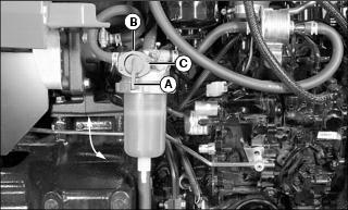 1. Locate the fuel shut-off valve on the right side of the machine on the fuel sediment filter.