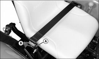1. Press red button (B) to release seat belt allowing the belt to retract.