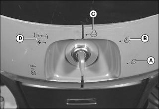 IMPORTANT: Avoid damage! There is an accessory key switch position (D) to the left of the key switch off position. Do not move the key switch to this position. The battery could be drained.