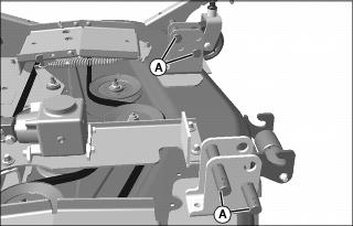 3. Measure the distance (A) from blade tip to level surface, on both ends of the blade, with a ruler or a leveling gauge available at your John Deere dealer.