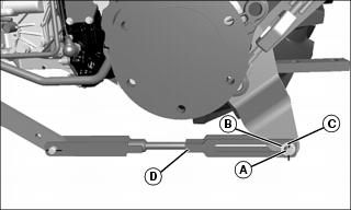 3. Turn rod lift link (D) left (counterclockwise) to lower the mower, or turn rod lift link right (clockwise) to raise the mower.