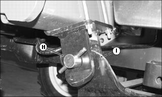 10. Install step pins (H) in front hanger and secure with locking pins (I).
