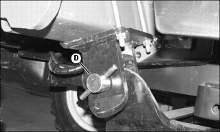 9. Remove step pins (D) from both front hangers.