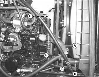 1. Check grille (A) and side screens (B), on both sides, for dirt, grass clippings and debris.