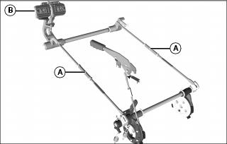 2. The park brake lever (B) should begin to lock at 3 clicks of lever travel, and the brakes should be fully locked at 6 - 8 clicks.