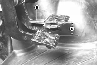 4. Push/pull on the pedal foot pad to make sure they are traveling at an equal distance, about 40 mm (1-37/64 in.) (C) from the starting point.