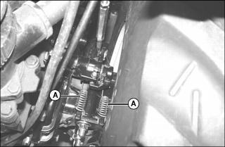 NOTE: If the two rear transmission brake bell crank springs (A) are attached to the ROPS, proceed to the next step. If not, install missing spring(s).
