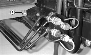 Front weight bracket (A) is an integral part of the machine frame. The bracket will hold up to six Quick-Tatch® weights.