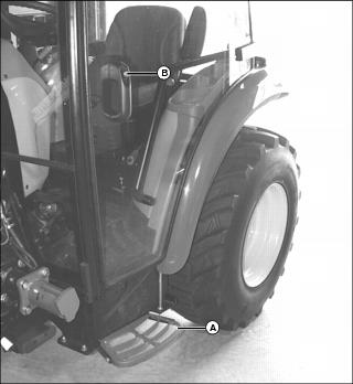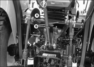 · Tractors without cab - Push the rear (A) and mid-PTO (B) knobs to the disengaged/off position.
