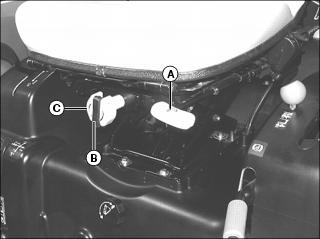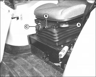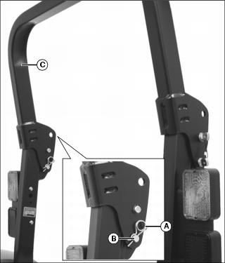 2. Carefully raise ROPS crossbar (C) to the operating position.