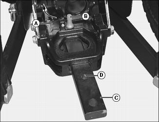c CAUTION: Avoid injury! Hitch towed loads only to the drawbar to avoid rearward upset. Do not use the safety chain for towing loads.