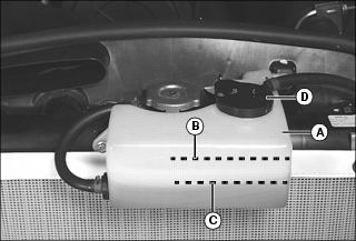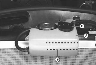 9. Remove cap (C) from recovery tank to add coolant if necessary.