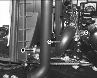 6. Check lower radiator hose (C) for damage or cracking. Replace if necessary.