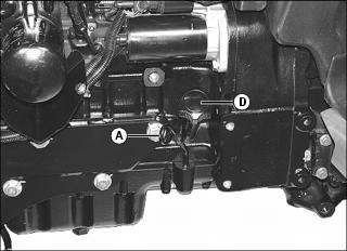 8. If oil is above level (B) on the dipstick, drain to proper level.