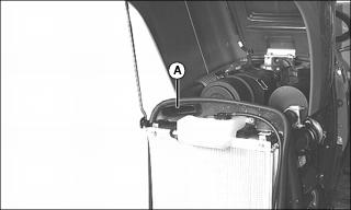 4. Check upper radiator hose (A) for damage or cracking. Replace if necessary.