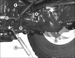 NOTE: Adjust bolt torque at the required service interval to prevent excessive forward and rearward movement of the front axle.