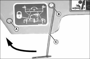 NOTE: Support rod must move freely to the stored position and lock in place over the bolt (A) when the driveshaft is installed on the PTO drive.