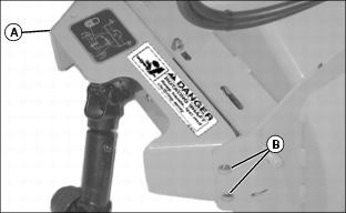 1. Install shield (A) with four M8x25 carriage bolts (B) and M8 nuts.