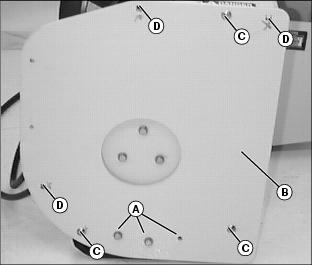 6. Remove cable shield (E) and verify that chute cables are still on pulleys.