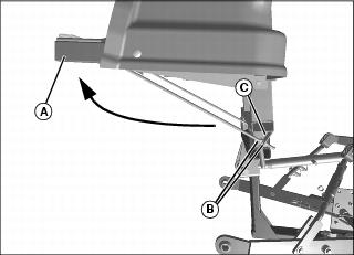 1. Remove spring locking pin (A) and quick-locking pin (B), and slide spreader bar (C) off of holes in rear lift arms.