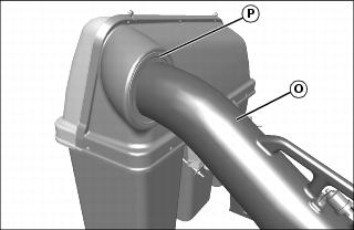 4. Insert round end of chute (O) into hopper opening (P). Guide chute into hopper far enough to provide clearance for connection to the POWER FLOW.