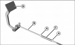 1. Loosen jam nuts (A) on brake linkage rod (B) and adjust turnbuckle (C) so there is about 22 - 30 mm (0.87 - 1.2 in.) of free play at the pedal (D).
