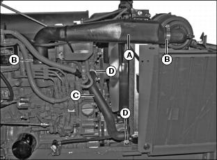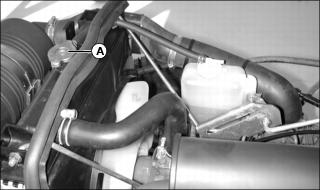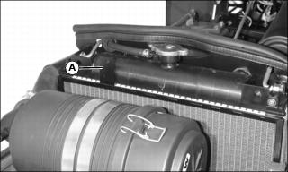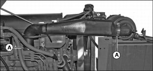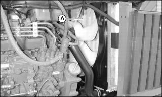 6. Remove all dirt and debris from radiator fins (A) using low pressure compressed air or water. Clean in direction (A), away from engine.