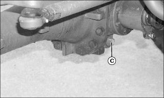 5. Position drain pan under differential drain plug (C). Remove plug and allow oil to drain completely.