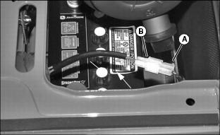 IMPORTANT: Avoid damage! Electric charge from booster battery can damage machine components. Do not install negative booster cable to machine frame. Install only to the engine block.