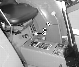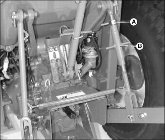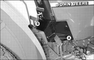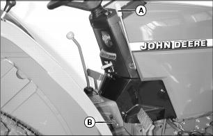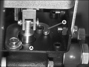 1. Remove screw (A) and lockout plate (B), located just below the SCV lever and rockshaft control lever.