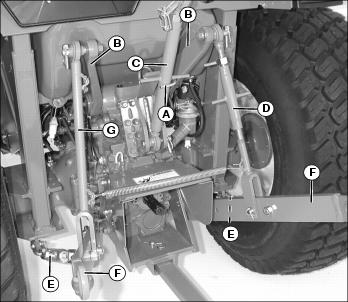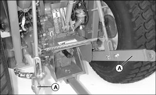A front weight bracket (A) is an integral part of the machine frame. The bracket will hold up to five Quick-Tatch™ weights.