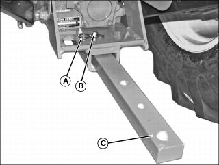 c CAUTION: Avoid injury! Hitch towed loads only to the drawbar to avoid rearward upset. Do not use the safety chain for towing loads.