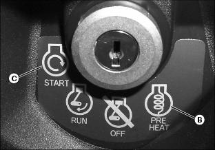 9. Turn key switch to off position and move transmission gear shift lever to the N (neutral) position.