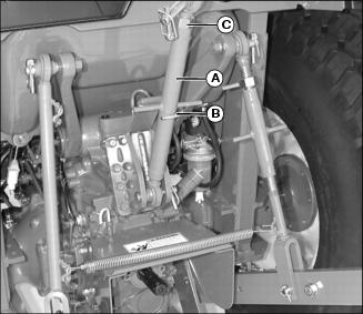 1. Check to be sure transmission oil level is at full mark on dipstick. If machine will be towed with front end raised, add 1 liter of oil for each 80 mm (or 1 qt for each 3 in.) that it is raised.