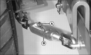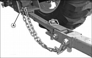 1. Route safety chain through drawbar hitch assembly (A) and attach chain hook to chain.
