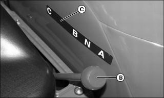 2. When the seat belt is not being used, push ends of seat belt onto holders (C) located on both fenders.