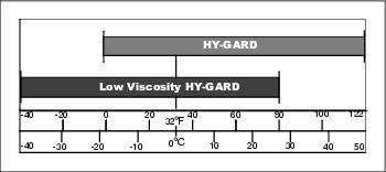 Standard John Deere J20C HY-GARD™ Transmission/Hydraulic Oil is recommended. John Deere J20D Low Viscosity HY-GARD™ Transmission/Hydraulic Oil may also be used.