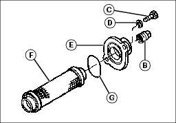 7. Clean suction screen, suction screen cover, and O-ring (G) with a mild solvent. Allow to dry.