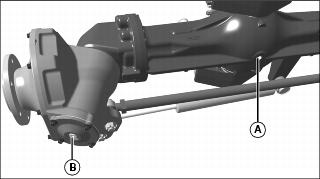 5. Position a drain pan under differential drain plug (A) and axle drain plugs (B) on both sides of the front axle.
