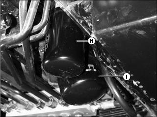 12. Locate hydraulic oil filter (H) under left side of machine.