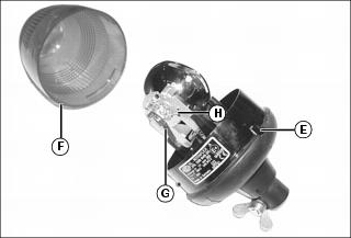 5. Unlatch retaining spring (H) and remove light bulb (I).