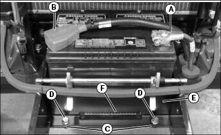 4. Push red cover (B) back away from positive (+) battery cable and remove cable from battery.