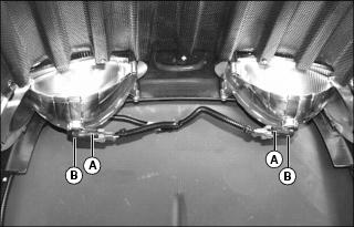 1. Remove two hex socket head screws (A) and lens assembly (B) from cab roof panel.