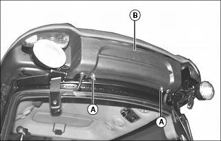 4. Remove fastener and pull insulation liner away from fender to access REAR mounting hardware (B).