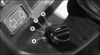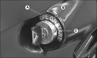 C - START Position - Move key from ON to this position and the starter will engage the engine flywheel to start the engine. Release the key to the ON position.