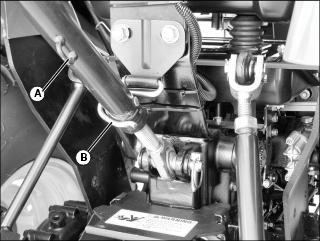 1. Remove spring locking pin (A) and drilled pin (B) on each side of the ROPS.