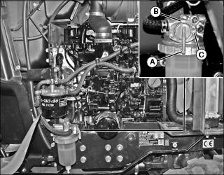 2. Carefully raise ROPS crossbar (C) to the operating position.