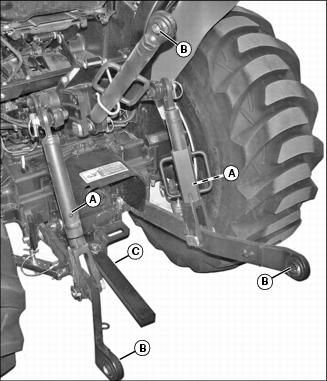 • Lubricate lift link grease fittings (A) with recommended grease or an equivalent.