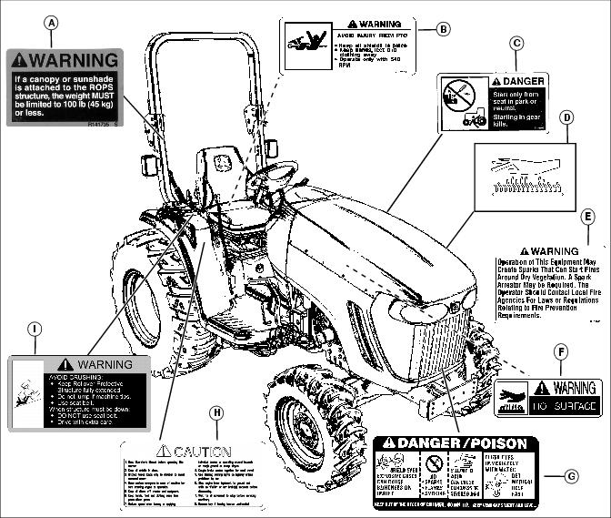 If a canopy or sunshade is attached to the ROPS structure, the weight MUST be limited to 100 lb (45 kg) or less.