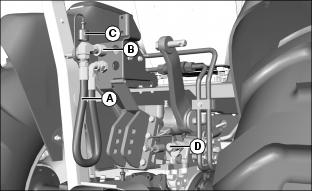 4. Connect backhoe return hose with female coupler to fitting (D).